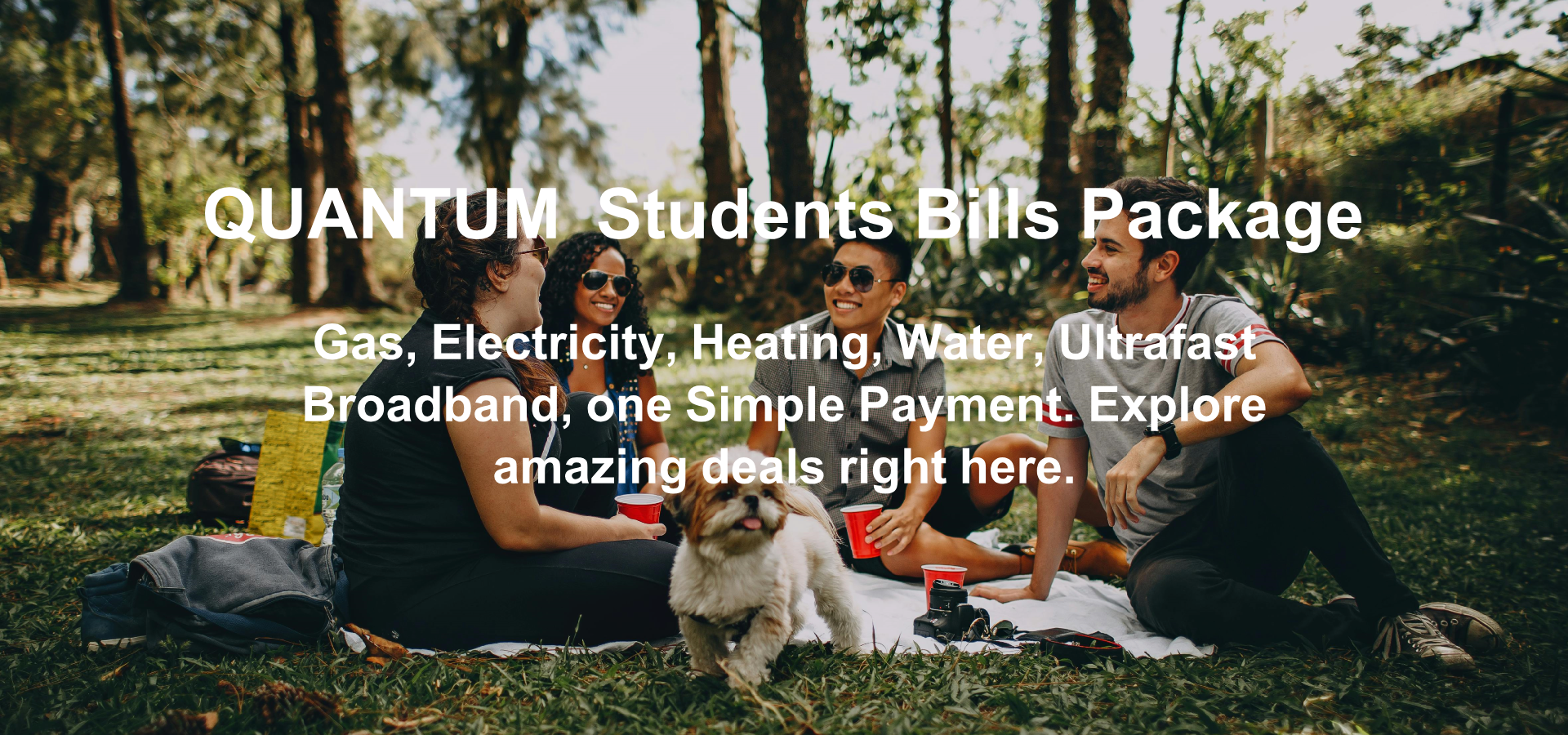 At QUANTUM, we combine all of your household bills into one easy package. Choose the services you need and you well receive one single monthly bill, split between housemates Simple.